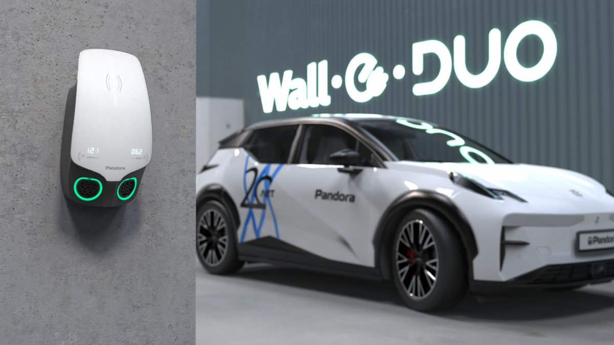 Зарядная станция Pandora Wall-E DUO LoRa AC 2x22 кВт может одновременно заряжать переменным током два электромобиля или гибрида.