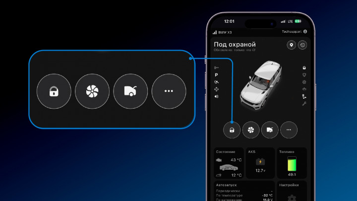 Разработчики приняли во внимание обратную связь пользователей и увеличили размер и контрастность основных кнопок управления на главном экране. После отправки команды на автозапуск появляется дополнительный виджет с информацией об остатке времени работы двигателя, оборотах и температуре. При активном виджете можно легко продлить время работы двигателя на 10 минут по нажатию одной кнопки.